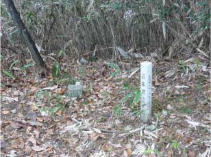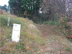 下りは十字路まで下り、ここから同じ道を直進しないで、右折した。行先表示板は三稜墓古墳になっていたからだ。結果的にはグルーと回って朝のバス停に下山した。ここから三稜墓古墳を経て針テラスもでの行程だ。 |