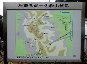 佐和山城は関が原に近く、交通の要衝であった。石田三成の城としてよく知られていて、三成が天正18年佐和山城主になり五層の天主閣を構えた立派な城だったそうだ。「三成に過ぎたるもの二つあり、島の左近と佐和山の城」言わしめた。関ヶ原の合戦で三成が破れ、井伊直政が城主になった。井伊直政は三成の居城であったことを嫌い、彦根山に彦根城を築き佐和山城を潰してしまった。実際は築城に着手する前に死去し、嫡子井伊直継が佐和山城の築材も利用して彦根城を築城したということだ。また築材は麓の清涼寺、龍潭寺にも移築転用されたらしい。清涼寺の文字は登山コースの注意書き看板によく出ていて、佐和山城跡は清流寺の境内地になっているようだ。 |