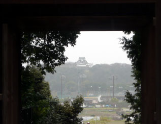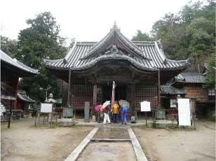 佐和山城跡でしばらく休憩して弁天山まで尾根道を歩いた。小雨が降る中龍潭寺への分岐に着く。ここを下ると石田三成公の銅像が案内されていた。尾根をしばらく行き少し登ると弁天山に着いた。ここから下り道、弁財天奥の院脇にに下山。長寿院大洞弁才天にお参りした。長寿院弁天堂は重要文化財、楼門も県指定の有形文化財で立派なものだ。またこの楼門を額縁に見立てると中央に彦根城が収まって見えるのも素晴らしい。