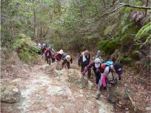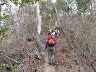 | 山頂を後に尾根道を有野台三丁目の登山口へと下山を開始した。登山道はよく整備されていて変化もあり楽しくあるこことができた。 有野台三丁目の登山口に下山、ここから一般道の歩道を歩いて有馬温泉へと向かった。峠堂交差点から県道98号線になり狭い道で歩道がない道を車に気をつけながら歩く。 有馬温泉、金の湯に到着、温泉につかりゆったりし、ほっこりして帰途についた。梅田に戻って反省会、楽しい一日を過ごした。多くの参加を頂きありがとうございました。 |