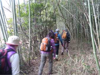 ![]() 登山口を入ると竹薮になる |