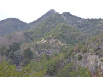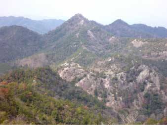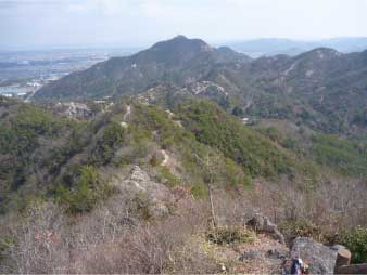 ![]() 善防山(中央が山頂、手前が第二ピーク) P140より |