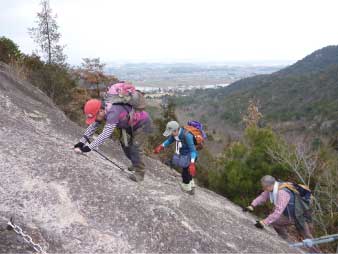 ![]() 標高差約10mの岩壁を登る |