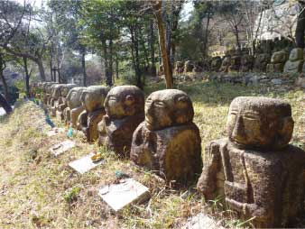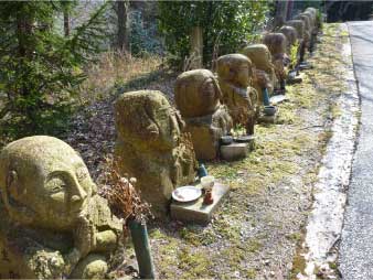 ![]() 古法華寺参道の石仏 |