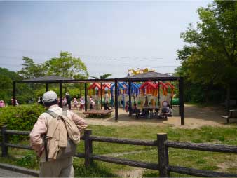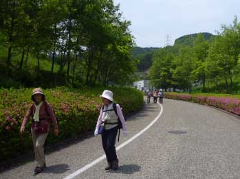 | 変電所の外周を時計方向に巻いて萩谷総合公園へ向かう。公園はツツジの回廊が終わり新緑に変わってきれいだ。しばらく休憩、幼稚園児が遠足でたくさん訪れていた。野球場から摂津峡へと下った。 | ||||||||||||