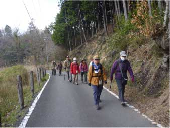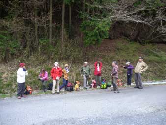 | 4月11日、松愛会山歩き会で小塩山に登った。今日の目的はカタクリ鑑賞だったがどんよりした天気なので期待は薄そうだ。 高槻を9時34分発の中畑回転場息のバスに乗る。バスは超満員で同じ世代の人たちが小塩山に行くようだ。終点の中畑回転場で降車、大きなグループが先に出発した。我々も一呼吸おいて出発した。 外畑(とのはた)へと峠を越えると左側に変電所があり正面に小塩山が見えてくる。大きなグループは小塩山を正面に見て尾根を登って行った。我々は一旦大原野森林公園の森の案内所へ進み、ここで少し早めの昼食にした。 |