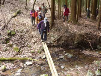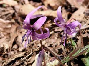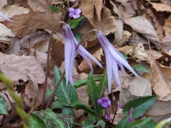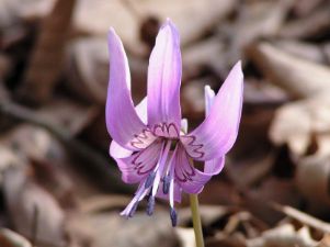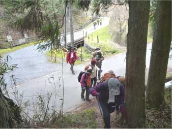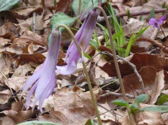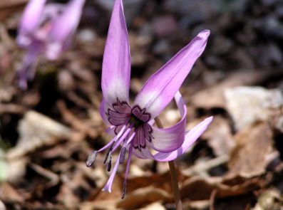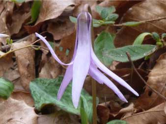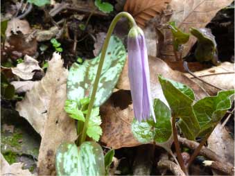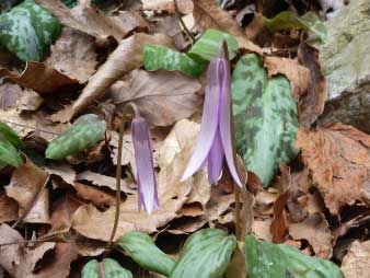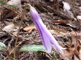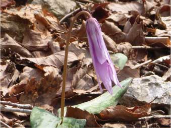 | 大原野へと下山開始したがつるつるした岩や石の道で大変滑りやすく、細心の注意をしながらの下山になった。大原野についてホッと一息ついた。 大原野バス停で一次解散し、5名は帰途につき残った6名は温泉へと行った。温泉までバスの予定だったがバスが出たあとだったので徒歩で京都エミナースまで歩いた。天然温泉竹の湯で温泉を楽しみ京都で反省会をして帰途についた。 下見をしていないのでゆったりした行動ができなく、また道を間違えて大変ご苦労をお掛けしました。それでも元気に完歩していただいて皆さんの元気には感服しました。参加の皆さんありがとうございました。 可憐なカタクリが鑑賞できなかったのでまた機会があればご案内したいと思います。2007年4月12日に小塩山で撮影したカタクリの写真を掲載しておきます。 |