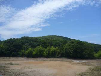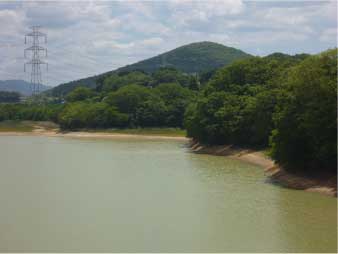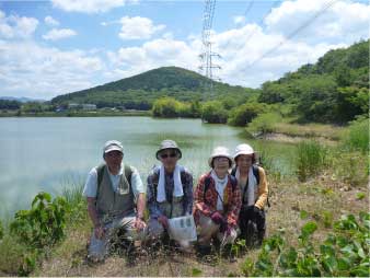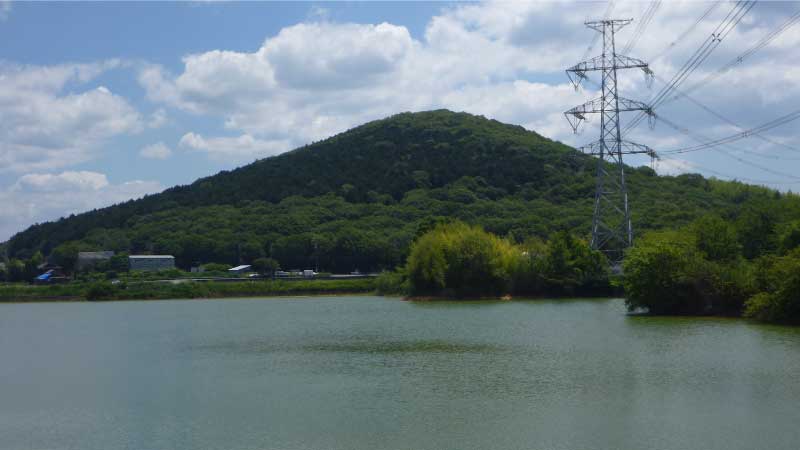 | 雄岡山の西側の登山口に下山、ここから広い通りを歩き雌岡山へ。しばらく歩くと大皿池に映る雄岡山が美しい。金棒池バス停を過ぎ右折し、金棒池から雄岡山を眺める。 | ||||||||||||