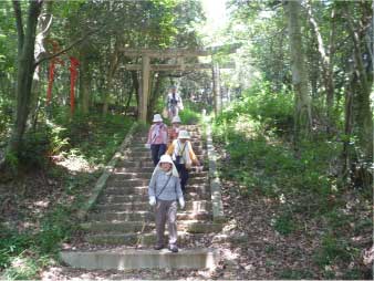 | 雌岡山山頂に戻り、息を整えて姫石(ひめいし)神社、裸石(らせき)神社へ一旦下った。裸石神社の御神体を拝んで、駐車場へと戻った。 | ||||||||||||