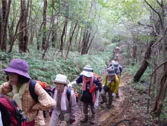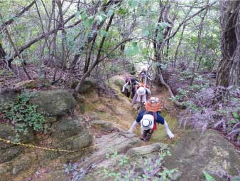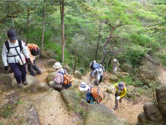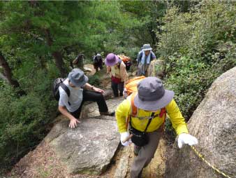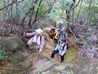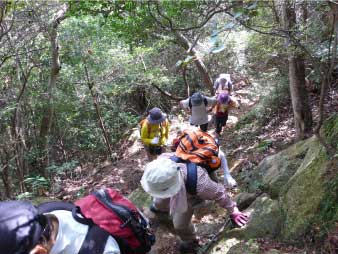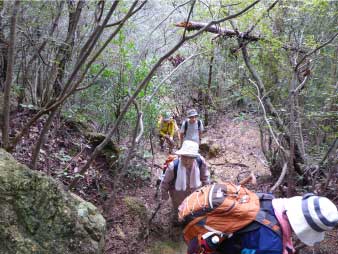 ![]() パノラマコースの急登を登る |