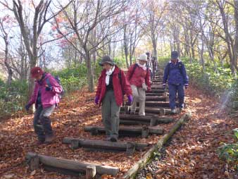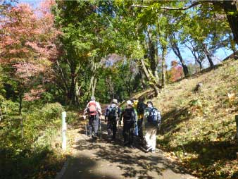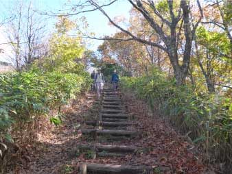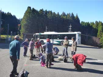 | 11月14日、松愛会山歩き会で曽爾高原・亀山に登った。近鉄鶴橋駅を7時55分発の名張行き急行で出発。名張に9時過ぎに到着、9時35分の曽爾高原行きのバスに乗った。名張駅に30分早く着く計画をしたので、バスは全員座れたが超満員で小一時間だった。途中、車窓から香落渓の紅葉を楽しむことができた。 曽爾高原バス停に到着、支度をして曽爾高原へと林道、ショートカットの登山道を登っていった。ぱっと開けて青少年自然の家の駐車場に出た。 |