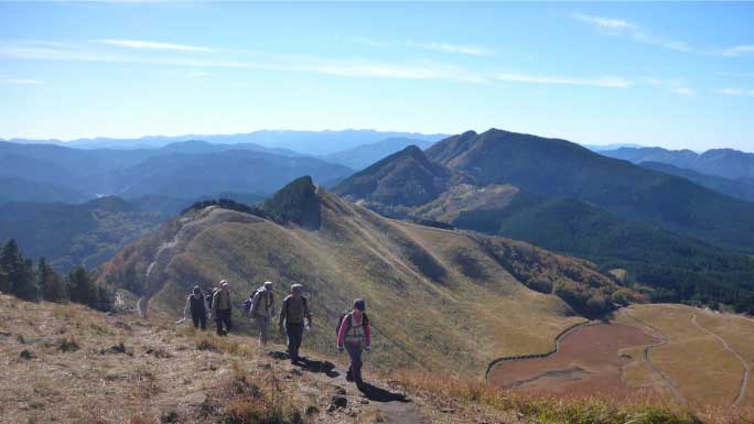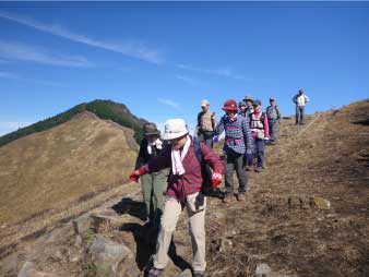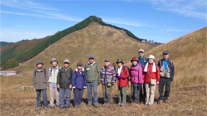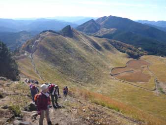 | 曽爾高原の大パノラマをしばらく楽しんで亀山峠へと下山した。露岩の下りは楽しんだ人、すこし緊張した人それぞれだった。 | ||||||||||