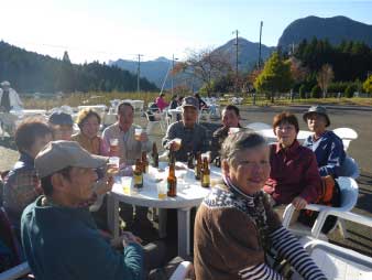 | ファームガーデンに下り、曽爾高原温泉お亀の湯にゆっくり浸かって温泉を楽しんだ。露天風呂からは鎧岳、兜岳が眺められ素晴らしいロケーションだ。美人の湯ということで女性達は頬を赤らめつるつる肌の美人になったようだ。 温泉の後は、ファームガーデンで地ビールを頂いてくつろぎ、バスに揺られて帰途についた。今日は本当に良い天気で曽爾高原はベストシーズンとあって素晴らしく、さらに温泉を楽しんで至福の一日だった。お天気に感謝、皆さんありがとう。 |