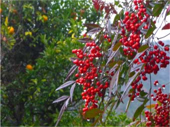 | なんとか危険個所を回避して無事水尾の到着、真っ赤なナンテンと黄色くたわわの実った柚子を眺めてホッとした。 柚子の里水尾のまるげんさんで、本年お納め会を行なった。柚子風呂を頂いて、地鶏の水炊きを賞味して1年の山歩き会の活動を終えた。 2014年もみんな元気に山登り会に参加して、体力、気力、忍耐力を維持しましょう。本年はありがとうございました。来る年も良い年でありますようにお祈りします。ありがとう。 |