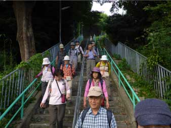 | 9月18日、松愛会山歩き会で高取山に登った。妙法寺駅に9時20分集合、タクシー乗場の先の阪神高速高架下から急な階段を下り高取山へと出発した。階段を少し下ると正面にこれから登る高取山が見える。 | ||||