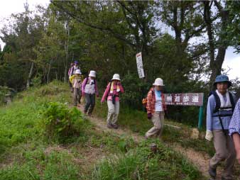 | しばらく登り、六甲全山縦走路の標識を見て道路を横断し民家の中の道を進む。しばらく進み少し下ったところに縦走路の標識があるので左折し少し細い道を登って行く。曲がり角でおバーちゃんに、元気で行っていらっしゃいと励まされて元気が出る。チョッと田舎に来た感じで素朴さがあってうれしい。 | ||||
