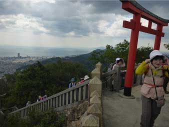 | 荒熊神社の石段を下り、遊歩道を高取神社へと向かう。高取山山頂、奥宮への長い石段を登る。石段を登ると神戸から大阪、和歌山と大阪湾とその周囲の素晴らしい展望が楽しめる。 | ||||