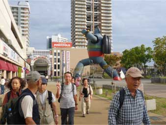 | 山麓線を渡って長田小学校前を通り長田神社へ下った。長田神社にお参りして大きなくすのきの下でパワーを頂いて長田駅に戻った。 ここで一次解散して地下鉄に乗り駒ヶ林の温泉に行ってゆっくり疲れを癒やし、新長田に戻って鉄人28号を見て帰阪し、梅田で反省会を行なった。皆さんお疲れ様でした。次回も楽しい山歩きをしましょう。 |