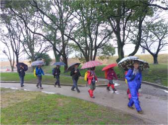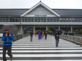 | 3月19日、松愛会山歩き会で兵庫県で一番低い山、唐船山に行った。少し遠出なので18切符を使用しての旅にした。 京橋駅に集合して、大阪駅から7時56分発姫路行き新快速で姫路へ、播州赤穂行きに乗り換えて終点の播州赤穂に9時41分到着。大阪では昨夜の雨が止んでいたが赤穂に近づくと次第に雨になってきた。 赤穂駅で支度、雨具を着てすっかり山登りのかっこうだ。今日は、兵庫県の一番低い唐船山に登るのだから登山のかっこうは普通の装備だ。 |