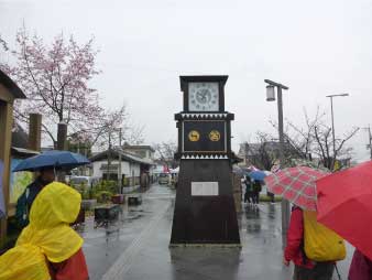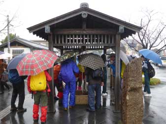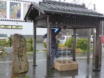 | 唐船山への道すがら赤穂の観光をしながら行くことにした。駅から一番近い息継ぎ井戸へ行った。井戸の手前にからくり時計・義士あんどんがある。 萱野三平、早水籐佐衛門が早駕籠で主君刃傷の凶報をもって江戸より駆けつけた際、この井戸で一息ついて城内の大石内蔵助邸へ入った。この井戸は天下に誇る日本三大上水道の一つで赤穂藩上水道の給水井戸だそうだ。 |