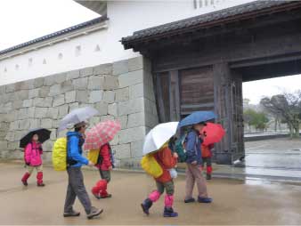 ![]() 本丸の石垣を楽しみながら水手門へ |