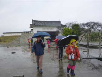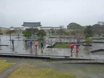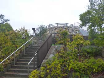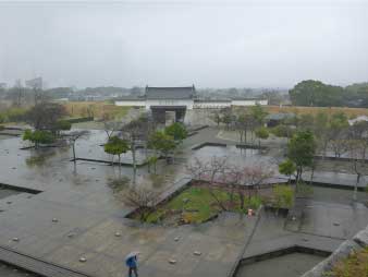 | 天守台に上がって周りを見渡してみた。本丸庭園が美しく見え、御殿跡にあったと思われる御殿を想像して見ると殿様の気分になる。 | ||||