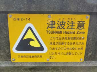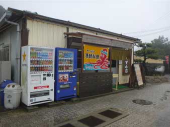 | 唐船山からの下山は東側のサンビーチへと下った。下りつくと、防波堤に津波注意の看板があった。どこに非難するのか書いてはなかった。 下山するとそこにほったて小屋があった。ほったて小屋のビニールハウス風なところで焼き牡蠣を楽しんだ。調理済みのご馳走を頂くのも良いが、たまにはわいわい言いながら自分たちで焼いて食べるのもなかなか面白い。 |