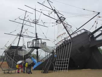 | お腹が一杯になったところで、赤穂海浜公園をぶらついた。雨も上がり始めたがどんより雲がまだかかっているので景色はあまり楽しめない。 | ||||