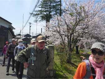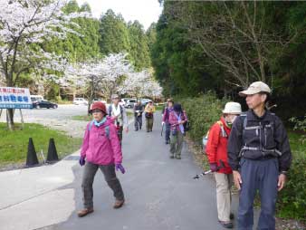 | 小文殊から下山にかかり、広い参道を二上登山口までひたすら下る。駐車場の桜真満開だ。駐車場の水場で靴の泥を落とし大土呂駅へと歩いた。 | ||||