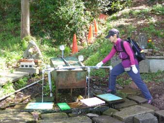 | ふくいのおいしい水酒清水(さかしょうず)の看板があり水場だ。昔、酒が湧き出たという言い伝えに由来していて以前は、鯖江市内の酒造会社が醸造にこの水を利用していたそうだ。近所の方が水汲みに来られていたがおいしい水だ。 | ||||