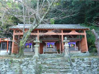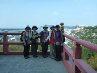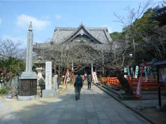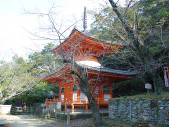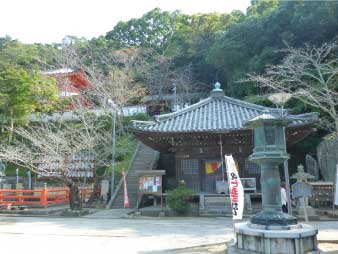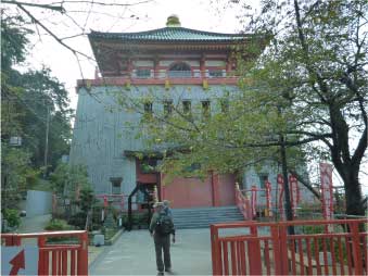 | 仏殿の横から肩男波の景色を楽しみ、境内中央の大師堂の左側の石段から名草山へと登りはじめた。石段を登ると多宝塔、稲荷神社があり小休止、稲荷神社の右側にある石段を登っていく。 | ||||