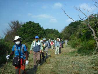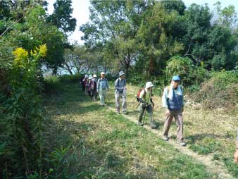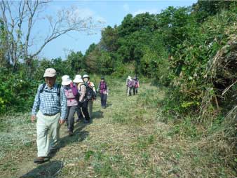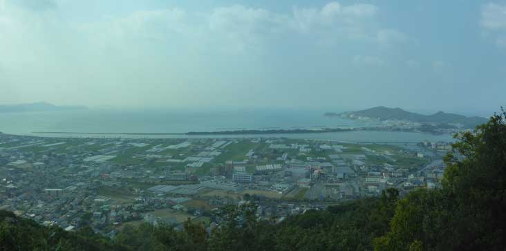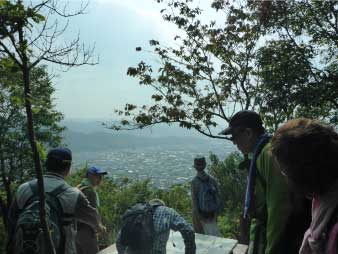 | 名草山は、標高229mで三等三角点になっている。山頂は広く毎日登山の拠点だろうかそこらの木でほったて小屋やベンチが作られている。展望は和歌の浦の片男波など楽しめるが、今日はPM2.5だろうか霞んで今一つだった。山頂で昼食をとりゆっくりくつろいで予定では正行寺だったが、逆の内原神社へと下った。今日予定していた日帰り入浴が和歌山国体の関係で使えないとのことで海南の黒潮温泉に行くことにしたためだ。 | ||||