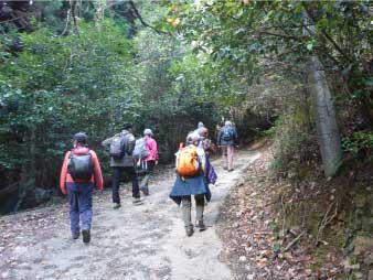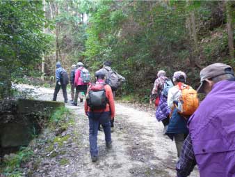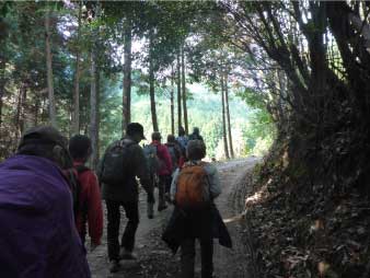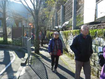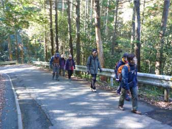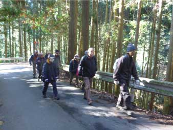 | 12月17日、松愛会山歩き会で柚子の里水尾に行った。当初12月の例会は、雙ヶ岡(ならびがおか)に登り、水尾に向かう予定だったが都合で行程を変更させて頂いた。 京都9時58分発の嵯峨野線で出発、保津峡10時17分到着、ここで支度をして府道50号線を水尾へと歩き始める。背に日を浴びながらゆっくり歩いた。約30分ほど歩くと左下へゆずの里歩道があり、そちらの道を歩く。 |