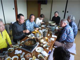| 今日お世話になるまるげんさんの到着。さっそく柚子風呂を頂いてほっこりし、美味しい地鶏の水炊き、すき焼をおなか一杯頂いて大満足だ。 今年は、雨の稲荷山に始まり、雪の金剛山、兵庫県最低峰の唐船山、18切符で福井の文殊山のカタクリを楽しみ、落葉山に登って有馬温泉、摂津峡のそうめん流し、紀三井寺と名草山、紅葉の青龍山とキリンビール工場見学そして今回の水尾と9回の山歩き会を実施。残念ながら雨天で竜山、赤目四十八滝、須磨アルプスの3回が中止になった。 来年も楽しい山歩きができるよう計画をしていきますので、皆さんのご参加をお持ちしています。皆さんありがとうございました。 |