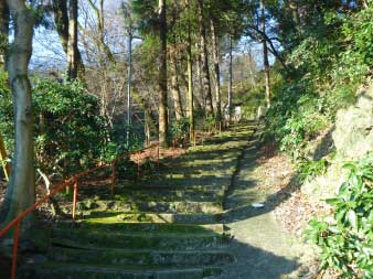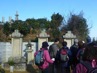 | 少し戻って神応寺山門から急な石段を登って行く。登り切ると神応寺境内、合掌して少し登ると墓地になっていてそこに、淀屋の墓がある。江戸時代初期の大阪の豪商、淀屋辰五郎一族の墓だ。我々が知っている淀屋は、淀屋橋ぐらいだろうか。 |