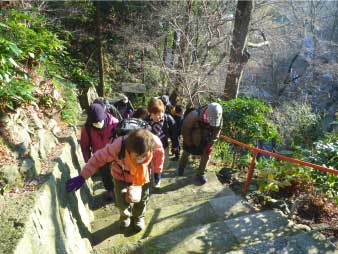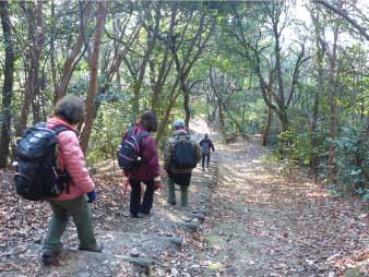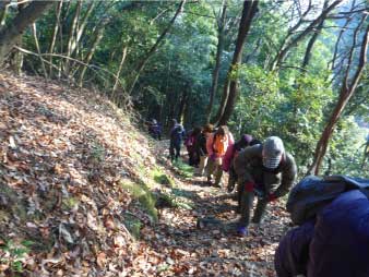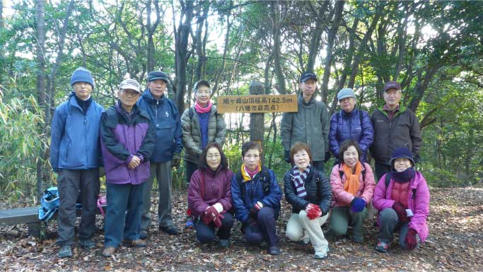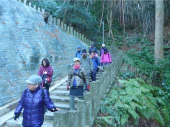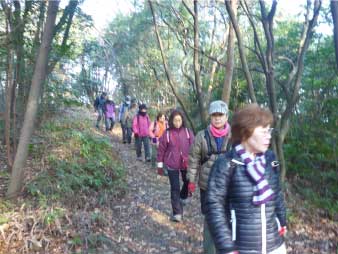 1月14日、松愛会山歩き会で鳩ヶ峰に登り伏見で新年会を行った。八幡市駅に9時集合し、男山の主峰、鳩ヶ峰へと登りはじめた。