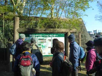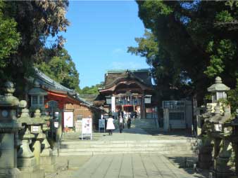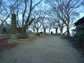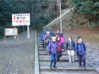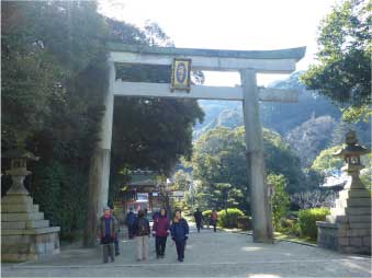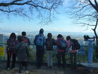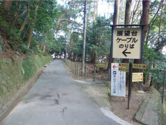 | 石清水八幡宮に皆さんに参拝してもらった。皆さんが参拝を済ませ戻ってこられたところで展望台に行った。社殿を巻くように道がつけられている。 |