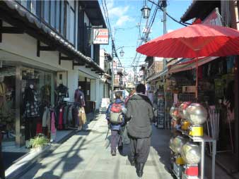 | 帰りは、裏参道を下った。急な石段が続いていた。下り終えると駐車場になった。川の方を見ると橋が珍しかったので立寄った。安居橋(あんごはし)と云うそうで、鎌倉時代から続く橋だそうで、元禄時代には八幡八景になったとか。現在は、石清水八幡宮の神事の舞台として親しまれているそうだ。 |