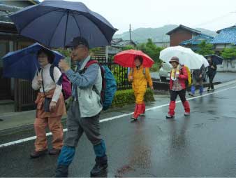 東山駅で下車し、音の花温泉へ行った。音の花温泉の大きな露天風呂でゆっくりくつろぎ、雨の中歩いた疲れを癒やした。温泉の後は東山駅に戻り鶴橋でお好み焼き、ビールで乾杯今日の反省会を行なった。皆さん雨の中お疲れ様でした。 |