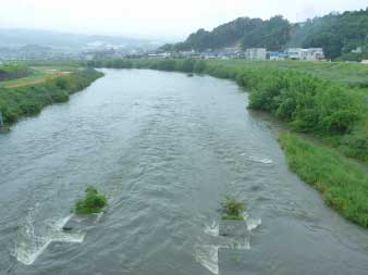 雨で増水した大和川 昭和橋から |