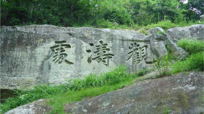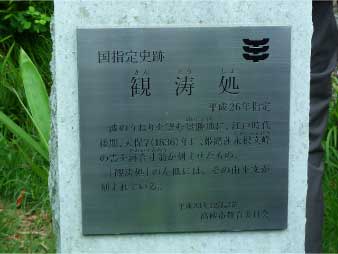 高砂市教育委員会の案内によれば、波のうねりを望む景勝地に、江戸時代後期、天保7年(1836)に、姫路藩永根文峰の書を河合寸翁が刻ませたもの。「観濤処」の左側には、その由来文が刻まれている。 |