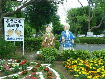 尉と姥'(じょうとうば)像 宝殿駅前にて |