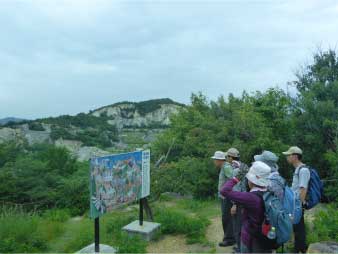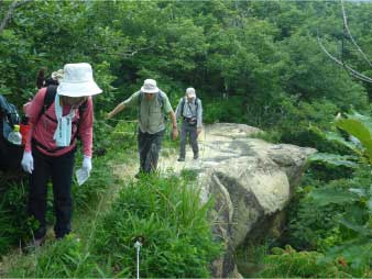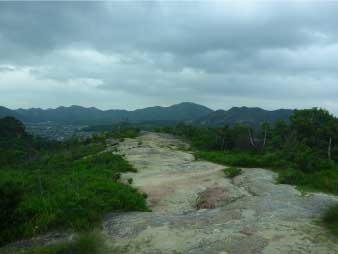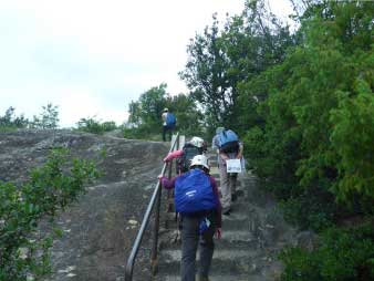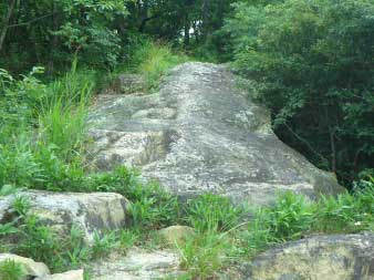 | 雨が心配なので一休みして採石場入口の登山口へと下山した。登りは緩やかなの尾根歩きだったが下りは少し急坂だった。 |