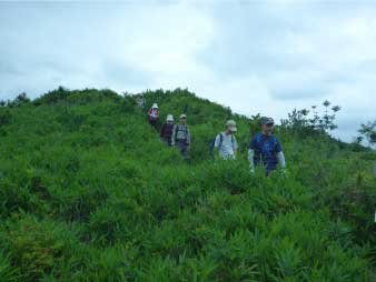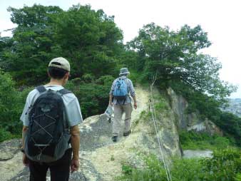 しばらく登ると岩の尾根になる。事前に調べた情報ではすごく危険な岩場で・・・と記されていた。危険とあってザイルを持参したが、それを使用するような危険な箇所はなかった。 |