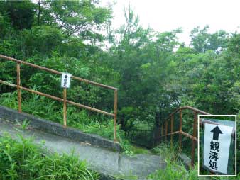 そんな箇所を過ぎると、少し広くなっていて右下の下る手摺のある石段がある。5mほど下ると名所の「観濤処(かんとうしょ)」に到着する。