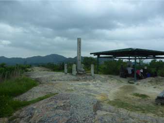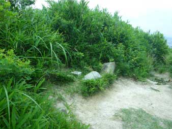 ここからひらすら尾根道を登っていく。途中よく分からないが古墳の横を通る。さらに登ると竜山の山頂に到達する。 |