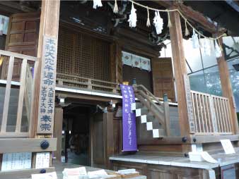 拝殿脇から下界を眺めると高砂市外が一望できる。一つ目の拝殿からお参り、2つ目の割拝殿で100円収めて石の宝殿、御神体を拝む。