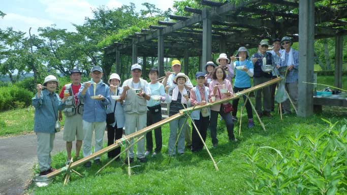 コース JR高槻駅(10:35)=[市バス]=塚脇・下の口(10:53)〜摂津峡桜広場(11:00/そうめん流し/13:00)〜 摂津峡花の里温泉祥風苑(13:10/入浴/15:30)=[送迎バス]=JR高槻駅(15:50) 天 候 晴れ 参加者 16名 実施日 2016.07.21 山歩き会 ohki