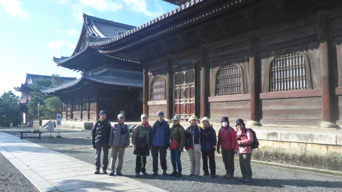 京都(8:48)=[JR]=花園(8:58/9:05)〜妙心寺(9:13/9:32)〜登山口(9:45)〜