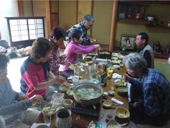 花園駅に戻り、JRで保津峡駅に移動、送迎バスでゆずの里水尾へ行った。早速柚ぶろに入りゆっくり温まる。そのあとはみんなで鍋をつついて楽しい忘年会を行った。